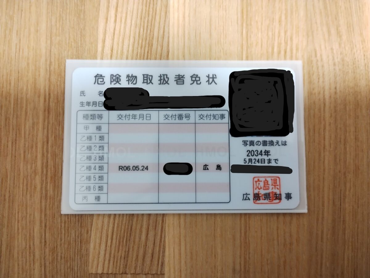 危険物を科目免除のために免状にしてみました。